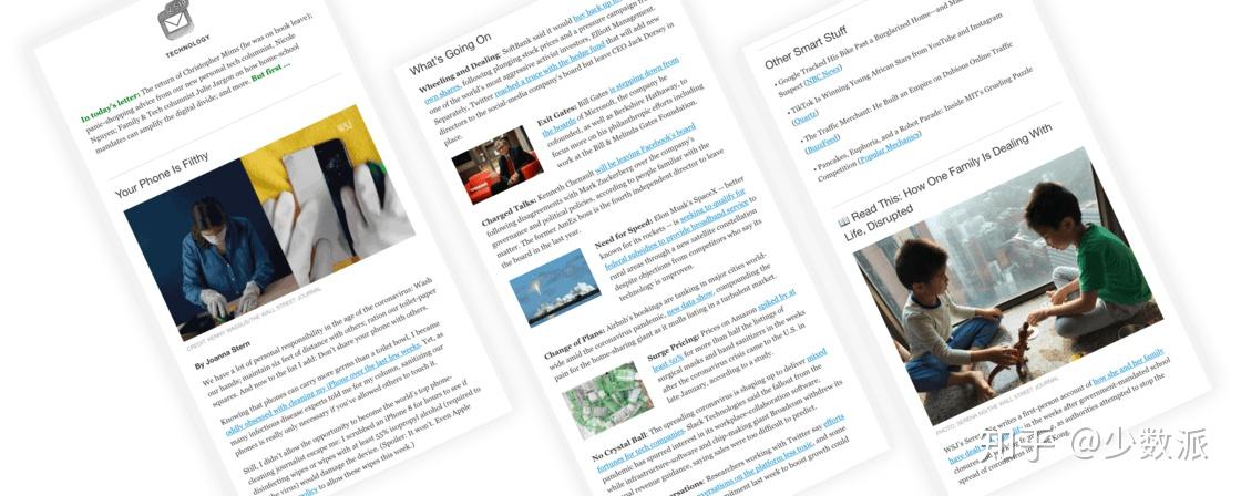 如果留心观察,你很可能已经发现自己关注的媒体网站,都在醒目位置加上了邮件订阅入口。的确,无论老牌印刷媒体还是新生代互联网媒体,都在争相推出邮件通讯产品,将其视作新的流量增长点。两年前,《纽约时报》制作的邮件通讯 数量就达到了 55 种,订阅量超过 1400 万。就连主打 专有排版格式 、大力推广 Apple News+ 服务的 Apple ,也在去年底加入赛场,推出了配套的 邮件新闻早报 。