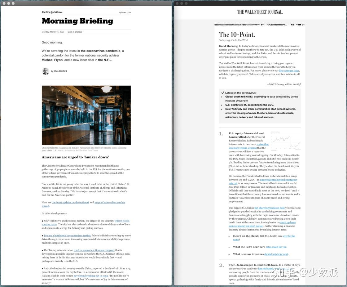 《纽约时报》的 简报(Briefing)系列邮件通讯成为了我新发现的平衡点。一方面,简报每天早晚定时发送,链接的文章数量相对固定,不用担心像读信息流那样浪费太多时间。另一方面,简报并不只是文章链接的机械汇总,而是会对新闻做出比较完整的总结。如果时间有限,只读邮件也足以了解事件概况。此外,简报的形式更加活泼,例如会附上背景报道和不同阵营的观点,编辑也会时不时穿插一两句呼应当天新闻的俏皮话等。