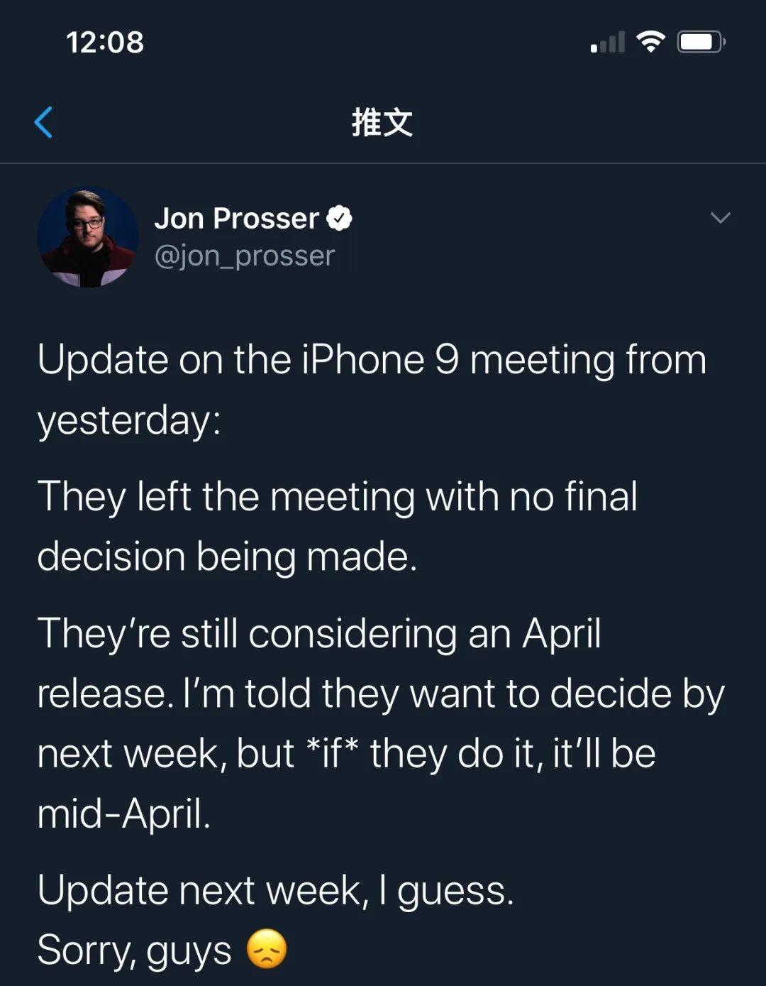 知名爆料人士Jon Prosser发表推特称: