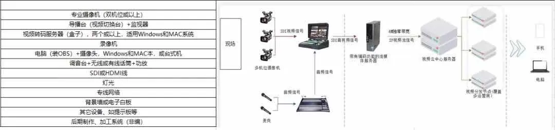 上面谈到的都是线上直播,线下也有直播,相比来说,线下有场地或舞台的直播,所用的设备更全、更专业,直播过程也更稳定。从下图就可以看到,参与直播保障的人力也会更多。