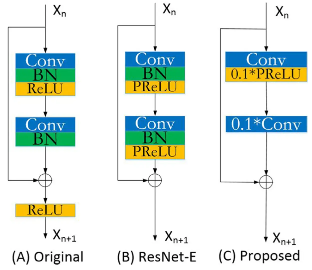 - 在较深的网络中,BN,conv,ReLU层等融合的操作会使网络复杂化并难以融合,并且使用参数0.1代替BN层。