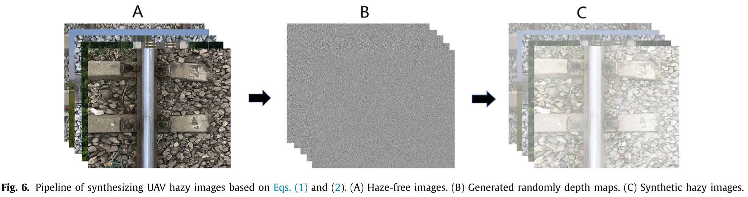 - 训练集1为无人机拍摄清晰的图像后合成有雾图像。拍摄图像时,无人机距离地面30-70m。随机选择大气光