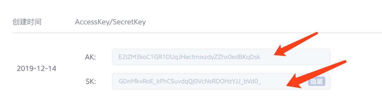 首先注册七牛云:qiniu.com,进入你的七牛云账号,打开秘钥页,记录下你的ak和sk