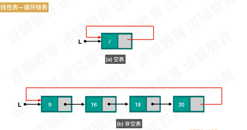 循环链表是另一种形式的链式存储结构。它的特点是表中最后一个结点的指针域指向首元结点,整个链表形成一个环。