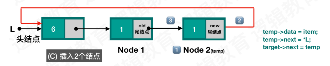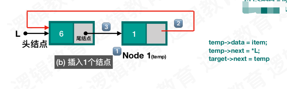 // 1.使用temp指针标记首元结点,找寻尾结点;
