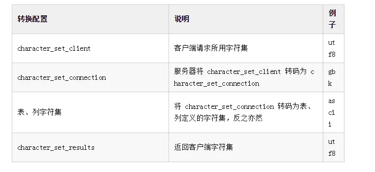 一个请求从客户端到 Mysql 服务器,再到表,再返回给客户端,中间是经过多层字符集转换的,主要包括下面4层: