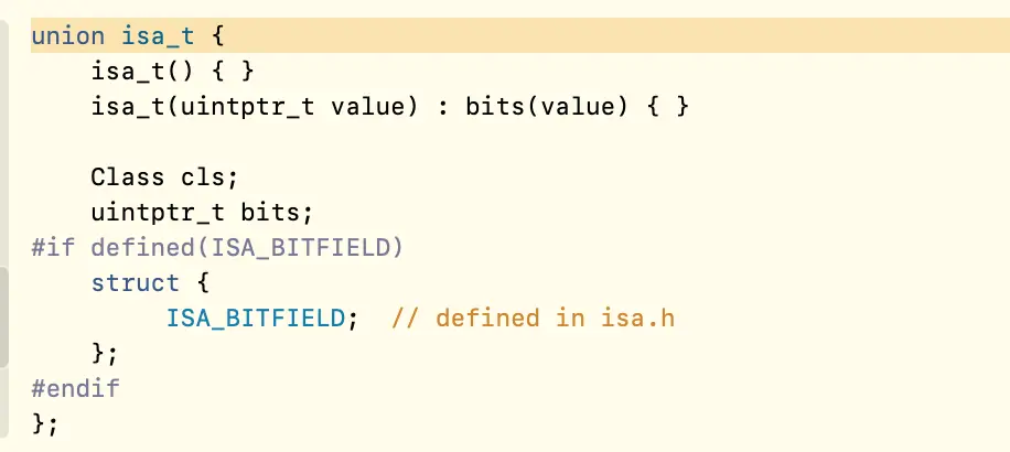 参照以上对union的理解再次回到isa的源码,分析 isa 联合体所占空间
