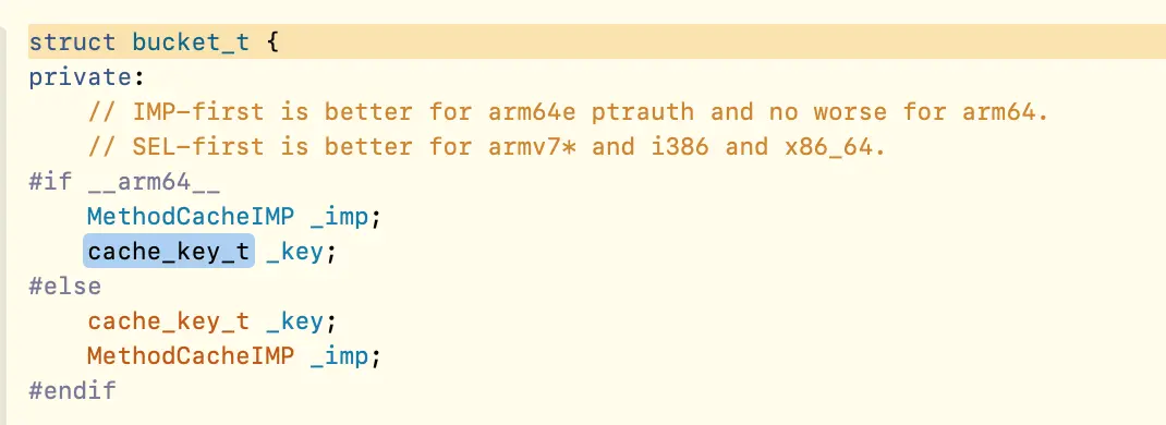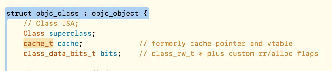 一、cache_t结构分析 上篇是对类的分析,cache_t 就是 Class 结构体组成的一部分,根据字面意思可以理解为缓存