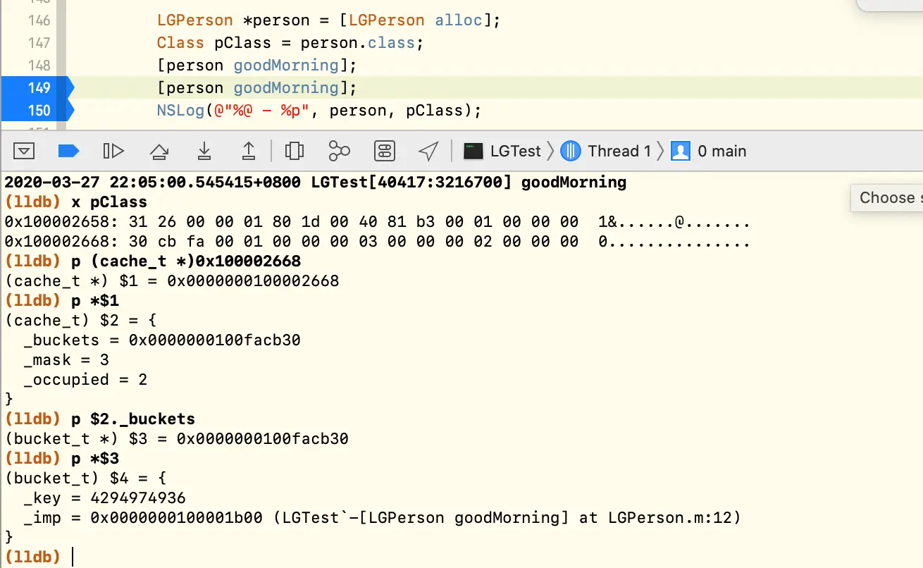 接下来通过打印来分析 cache_t 里存储的类容