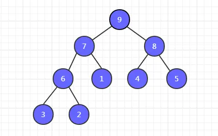 看一下大顶堆的示例图,小顶堆类似,只不过是小值在上而已。