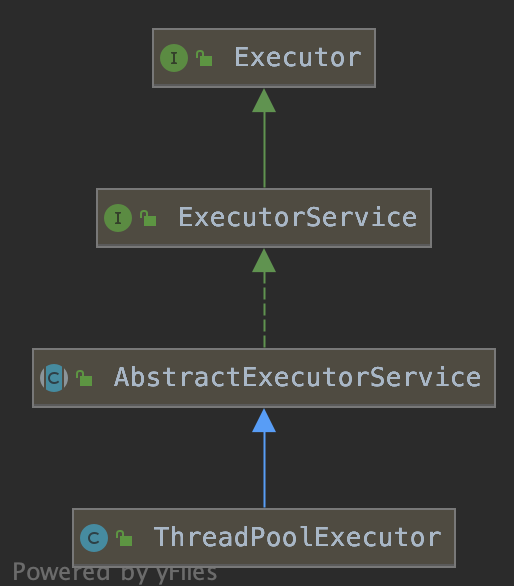 - 继承了AQS,说明他需要实现lock和unlock方法,也就是他自己简单实现了锁的功能,或者说他自己就是一个独占锁,这个其实是为了避免其他线程调用了线程池的shutdown方法,中断正在执行的worker线程,执行任务时会先进行woker.lock,这样会在执行完任务后在进行中断操作。因为shutdown方法只会中断,被阻塞挂起的空闲线程。