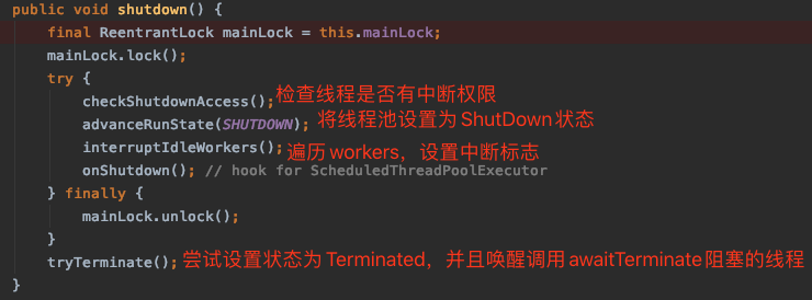 shutDown方法关闭线程池。