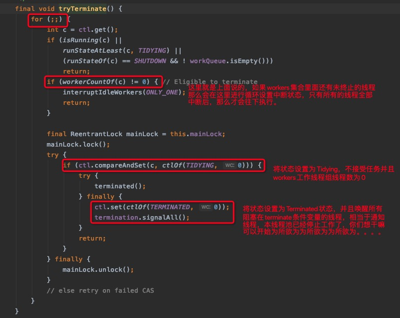 shutDown方法中调用tryterminate
