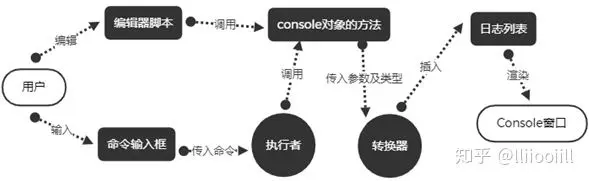 由于浏览器没有提供直接获取日志信息的途径,除了直接重写iframe元素的Console,我也想不出更好的办法。深思熟虑之后我写了一个Console类用来处理日志,其运作流程如下: