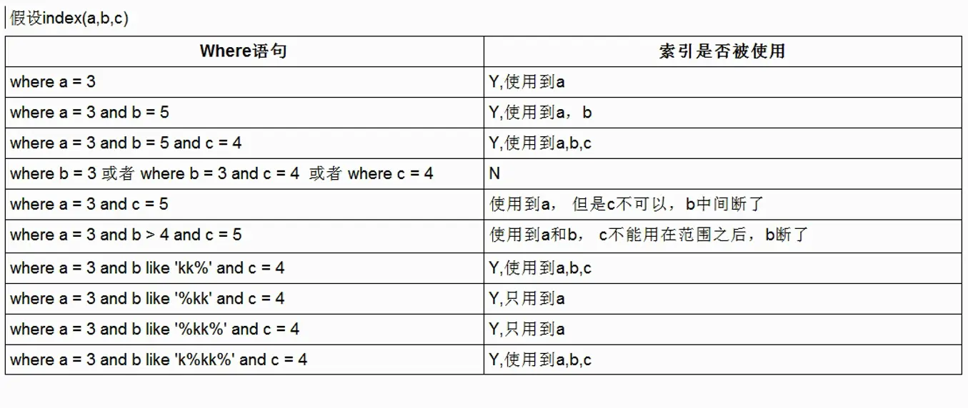 如果查询中有某个列的范围查询,则其右边所有列都无法使用索引。