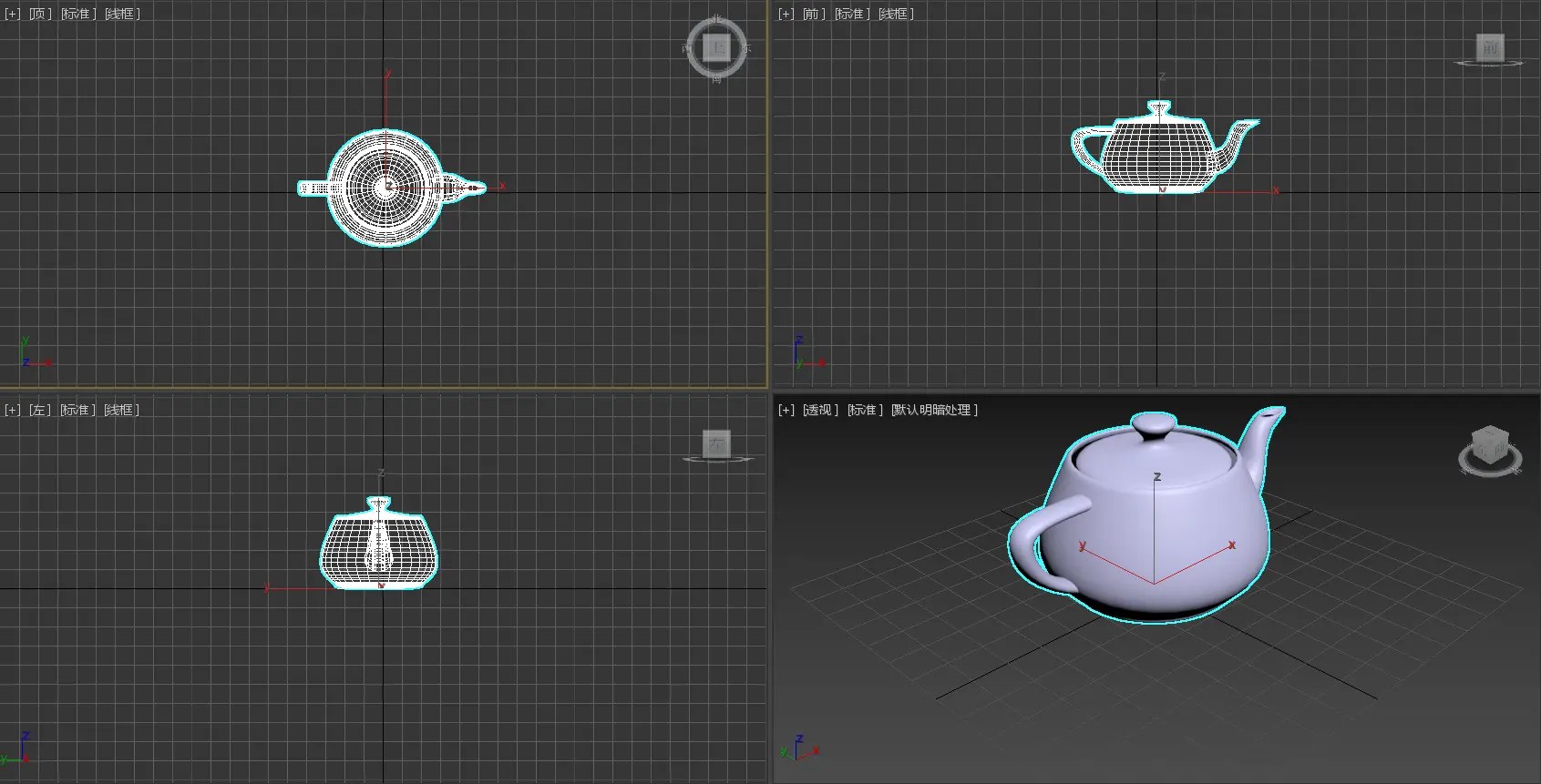 选择基本体,如茶壶,在3D视图中点击左键选中位置,一直按住左键进行拖动,进行大小的调整,完毕后按Esc键或者鼠标右键进行退出基本体的选中状态。
