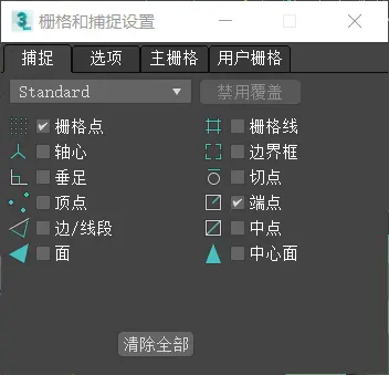 - 右键按钮进入设置,常用于物体端点吸附作用