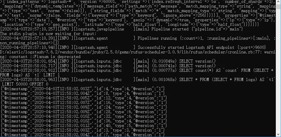 这样就可以通过logstash 进行数据采集,采集MySQL 数据库相应表的内容;