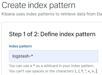 在Management 的Index Patterns 创建一个索引模式,如图,
