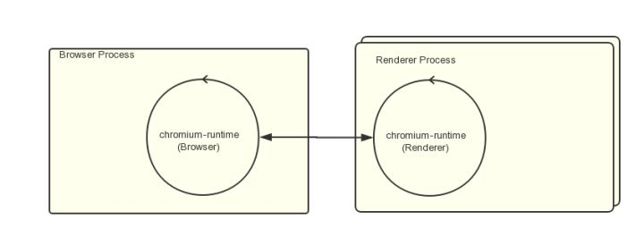 Chromium运行时有一个 Browser Process,以及一个或者多个 Renderer Process。