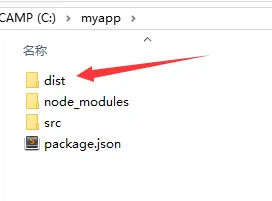 执行成功后,会在 myapp 项目目录下自动创建 dist 目录,用于存放打包后的文件。