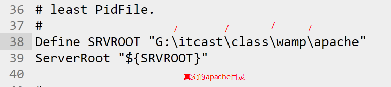 2.修改apache主配置文件(httpd.conf)中的“SVRROOT”为apache的实际目录。