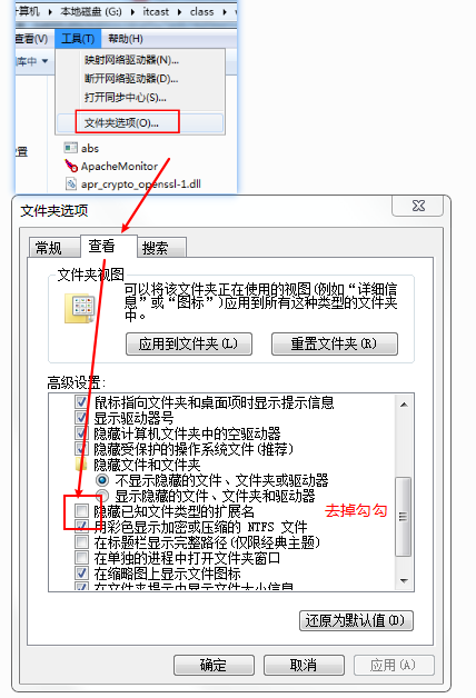我的目录结构: G:\itcast\class\wamp\apache