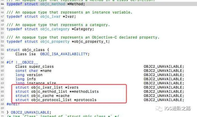 消息的关键在于我们上面说过的的结构体objc_class,这个结构体有两个字段是我们在分发消息时所用到的: