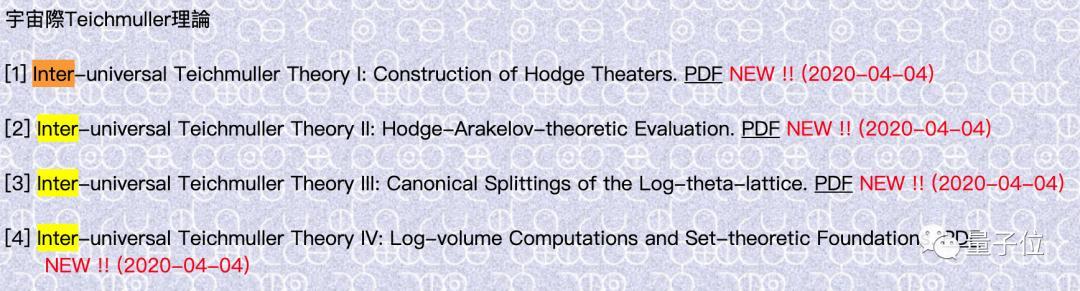 望月新一发表了4篇论文来证明这一猜想,他把自己的研究成果叫做“宇宙际Teichmuller理论”。