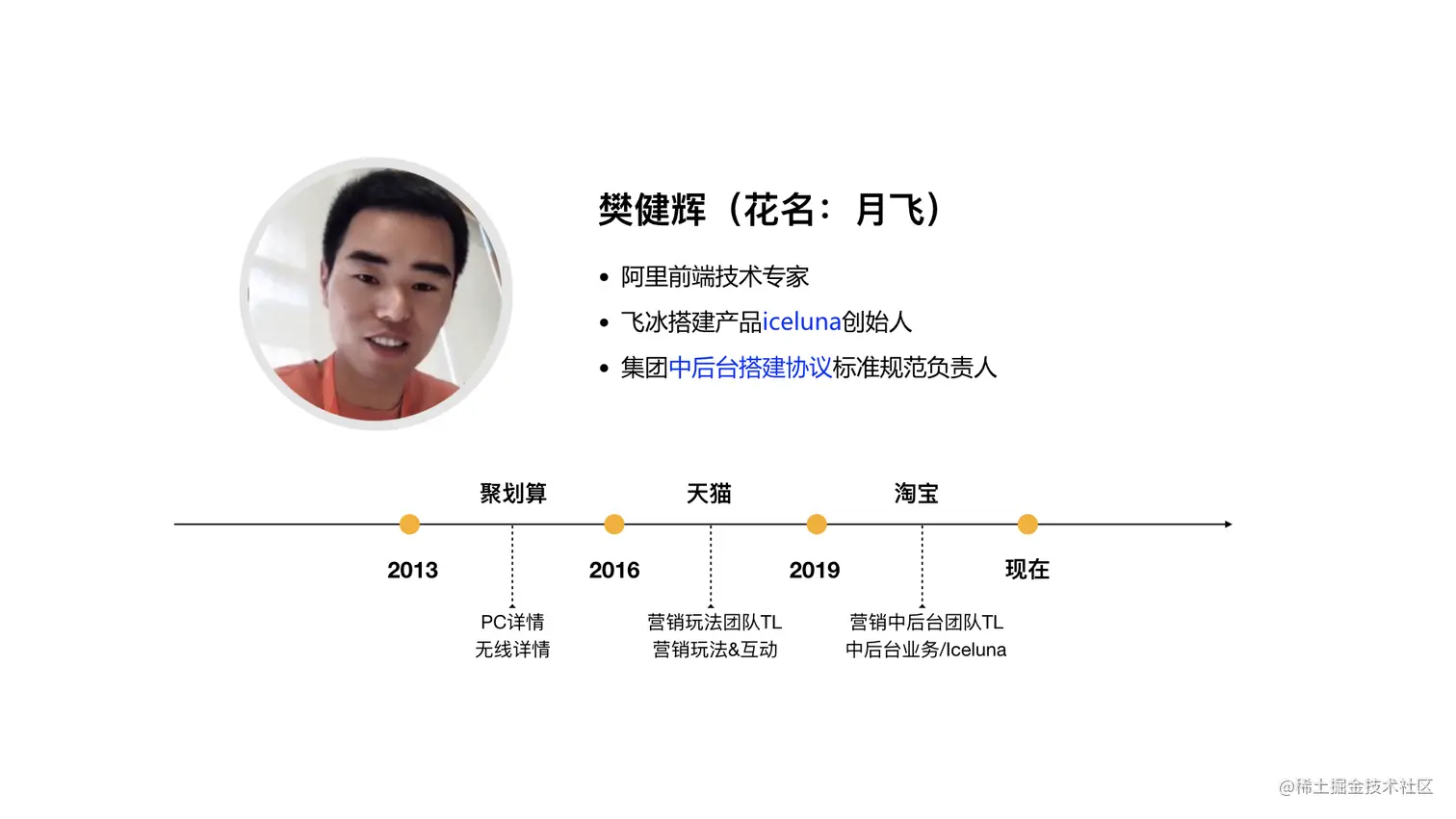 在正式分享之前,先自我介绍一下。我是来自阿里淘系营销中后台团队的月飞,负责中后台搭建产品 iceluna,以及《阿里集团中后台搭建协议标准规范》的推广和落地。2013 年加入阿里巴巴聚划算,负责 PC & 无线详情。2016 年加入天猫,带领营销玩法团队,负责玩法、互动类型业务。2019 年加入淘系技术部,带领营销中后台团队,负责中后台业务,专注于中后台搭建产品建设。