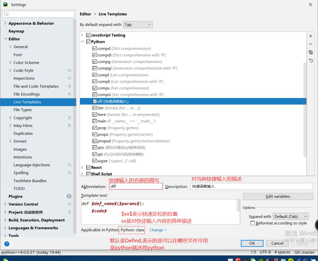 很简单的一个示例,就是在pycharm中输入main关键字,会自动带出一些默认的代码,这个就是活动模板配置