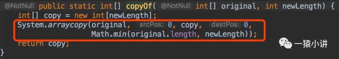 鉴于 Arrays.copyOf() 底层还是调用 System.arraycopy() 来实现,性能肯定稍逊色于直接调用 System.arraycopy() 来完成数组复制。