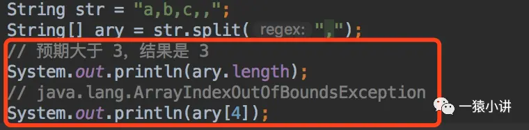 另外,平时研发中,需要注意一点,在使用索引访问用 String 的 split() 方法得到的数组时,需做最后一个分隔符后有无内容的检查,否则会有抛异常的风险。