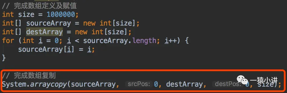 红色圈住部分,在本机跑起来验证,方式一、方式二,差距不是特别大,在数据量大的时候,System.arraycopy() 还是稍微好一点。