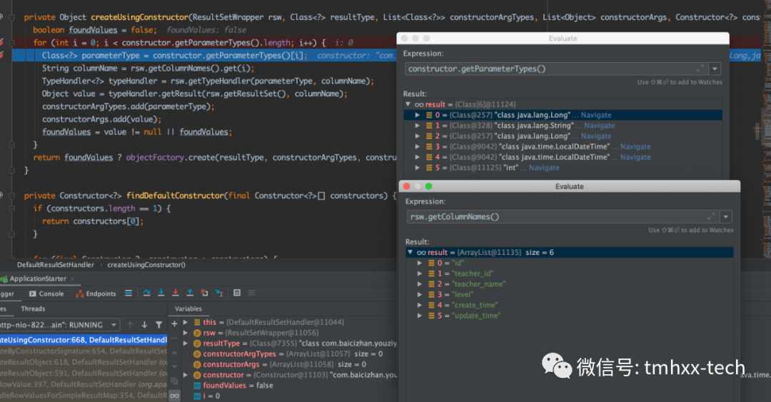 因此,对于TestEntity来说,既没有定义特定的类型处理器,构造函数映射为空,且没有无参构造函数,也不是接口,所以执行的是 createByConstructorSignature(rsw, resultType, constructorArgTypes, constructorArgs)这个方法。
