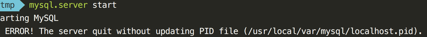 ERROR! The server quit without updating PID file (/usr/local/var/mysql/localhost.pid)