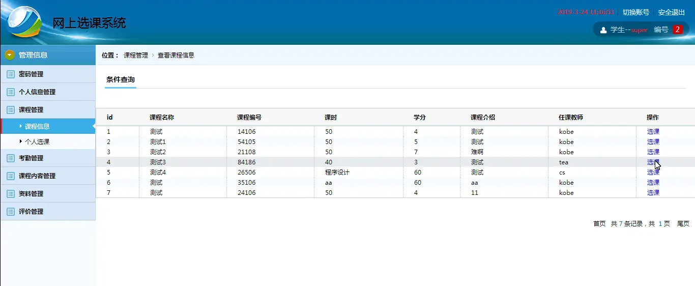 网上选课系统(ssm,mysql)
