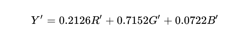 R/G/B = 255 * 0.2126 + 119 * 0.7152 + 50 * 0.0722 = 143