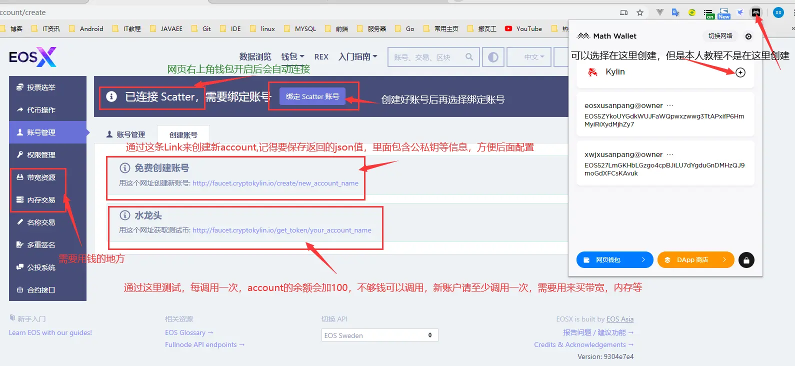 可以使用麦子钱包界面来创建,也可以到EOSX里创建Kylin测试网账号,这里选择到Kylin测试网来创建account.