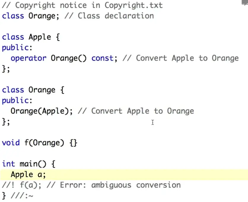 class A { public: explicit A(int a) { cout << "A(int a)" << endl; } A(const A& a) { cout << "A(const A& a)" << endl; } private: int _a; }; void doA(A a) {} int main() { A a1(1); // 复制初始化不通过 A a2 = 1; // explicit 修饰构造函数的对象不可以从 int 到 A 的隐式转换 doA(1); } -