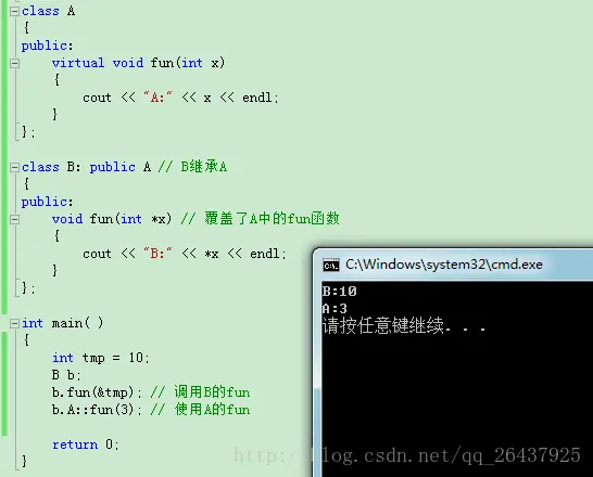 C++ 中子类隐藏父类同名函数(只需同名,参数、返回值无关)、变量;Java 中必须参数、返回值相同才能隐藏父类方法
