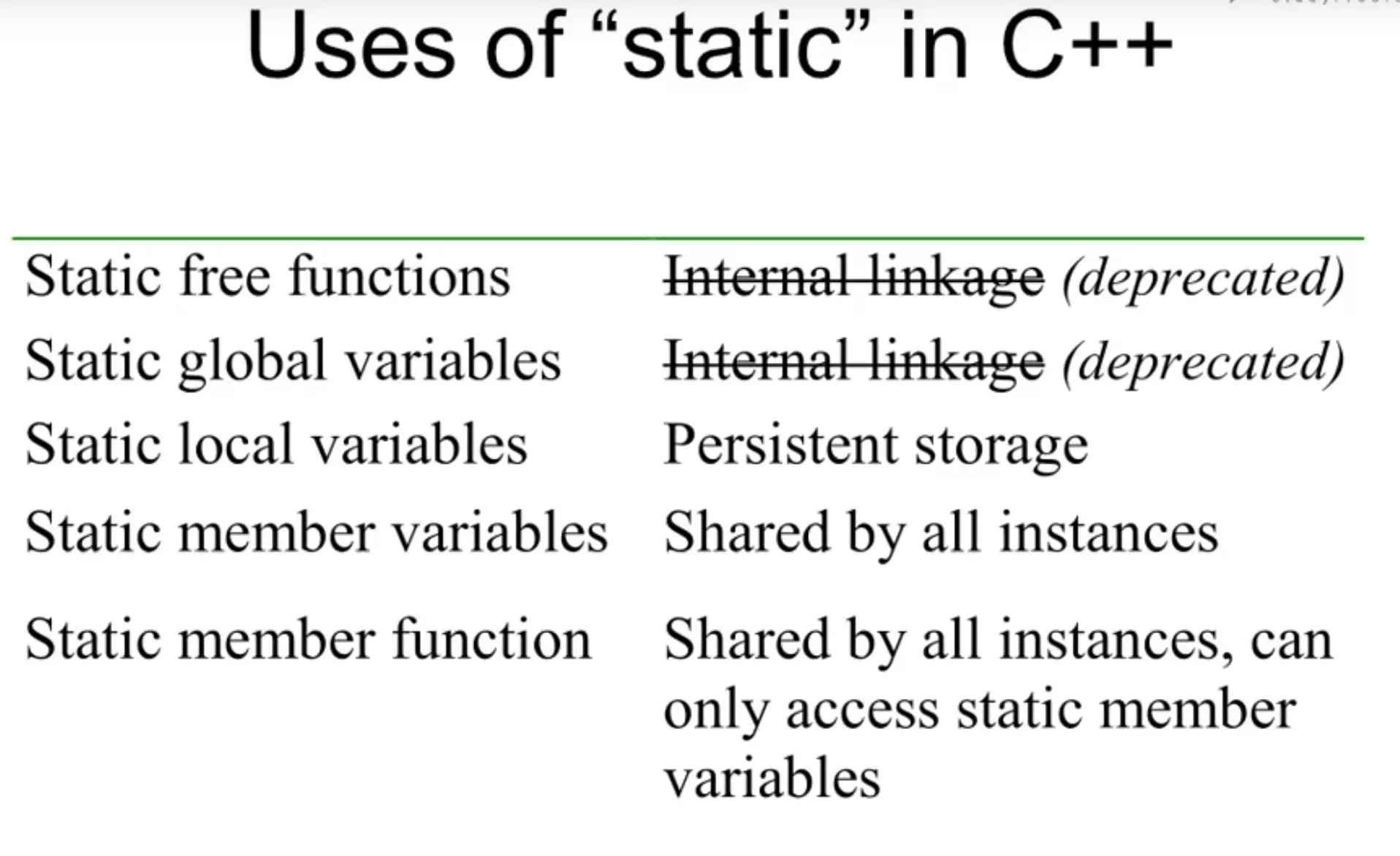- 修饰成员函数,修饰成员函数使得不需要生成对象就可以访问该函数,但是在 static 函数内不能访问非静态成员。