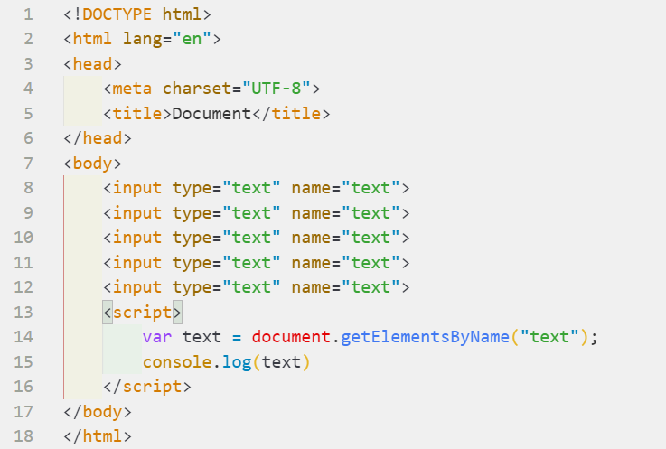 注意:getElementByName()定义在HTMLDocument类中,而不在Document类中,所以它只针对HTML文档可用,在XML文档中不可用。它返回一个NodeList对象,后者的行为类似一个包含若干Element对象的只读数组。