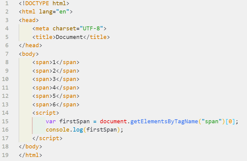 类似于getElementByName(),getElementsByTagName()返回一个NodeList对象。在NodeList中返回的元素按照在文档中的顺序排序,可用如下代码选取文档中的第一个span元素: