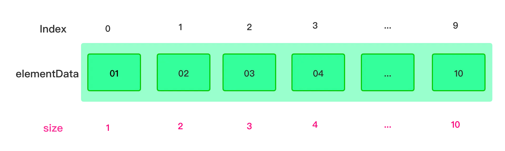 当前数组大小 + (当前数组大小 / 2) = 10 + 5也就是第二次扩容大小为 15 。8、最后直接将需要添加的数据以