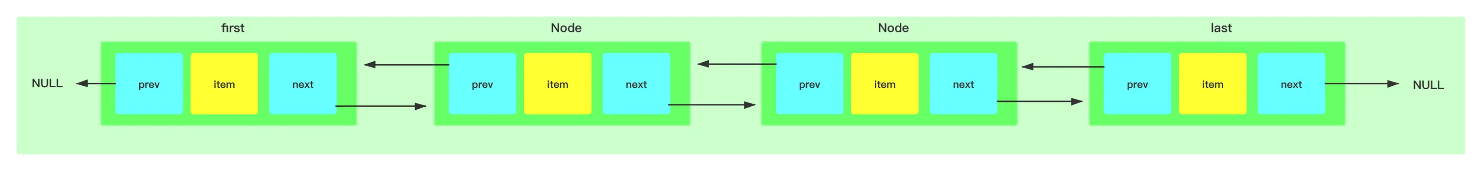 - 当链表中没有数据时,first 和 last 是同一个节点,前后指向都是 null;