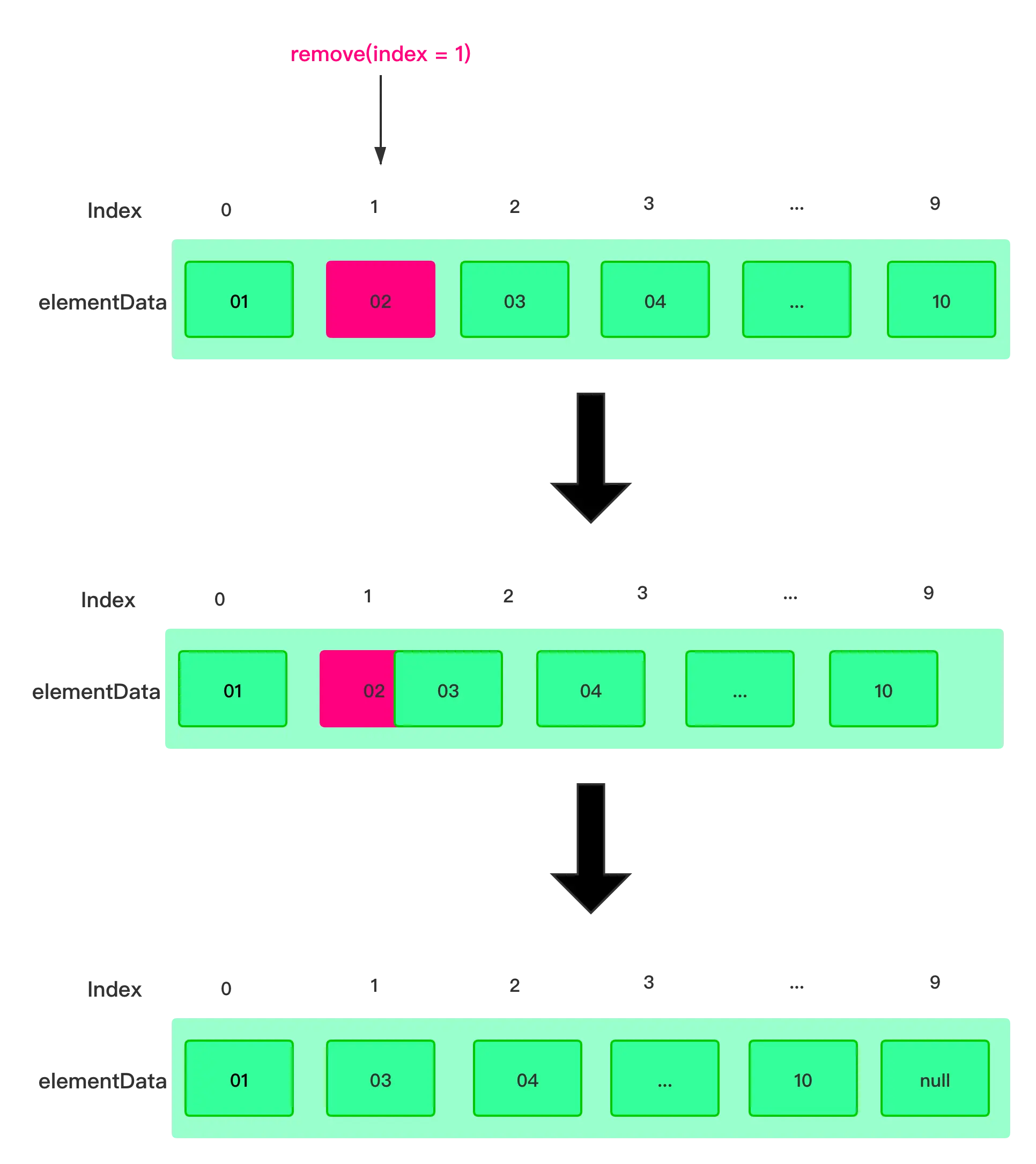 remove(index)和remove(obj)等方式,平时我在项目中用的最多的就是这 2 个 API , 下面我分别来说下它们底层实现方式吧:remove(index):