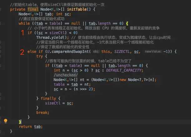 2、put 时,如果数组还未初始化,那么使用 Thread##yield 和 sun.misc.Unsafe##compareAndSwapInt 保证了只有一个线程初始化数组。