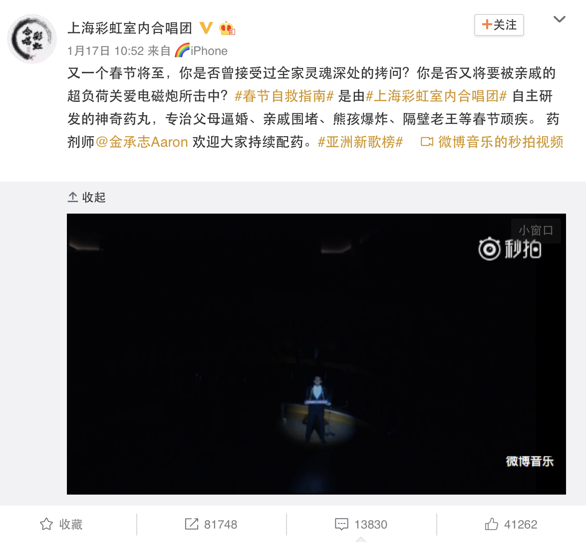 因此今天的数据分析就应景来谈谈《春节自救指南》,这首发布于2017年1月17日(腊月二十)而特意为春节准备的神曲。