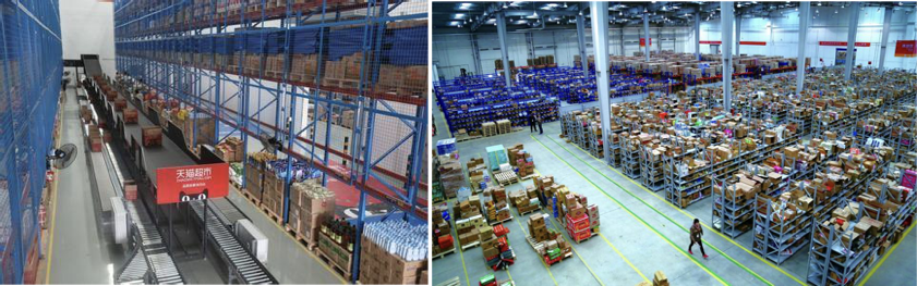 最令人惊奇的是天猫超市, 不仅与天猫上买家自找的物流服务拉开了差距,同时还将物流服务水平向一线电商平台看齐。可见马云爸爸过去一两年在天猫超市上的投入没有白搭。除了淘宝和支付宝的各种入口支持,在物流的投入更是不遗余力,属于屡战屡败且屡败屡战的类型。一开始试图凭借菜鸟物流来弯道超车,然而口碑不佳。天猫超市本来就是B2B2C的模式,而在物流方面也是基于菜鸟物流做开放平台,网络万象、芝麻开门等众多小弟,在品质管控上确有许多不可控性。不过,阿里巴巴似乎并没有轻易放弃,在物流体验上不断升级和打磨同时加强管控,体验逐步提升:有搏眼球的快递员带垃圾服务,也有高大上的智能仓储,剑指Amazon。